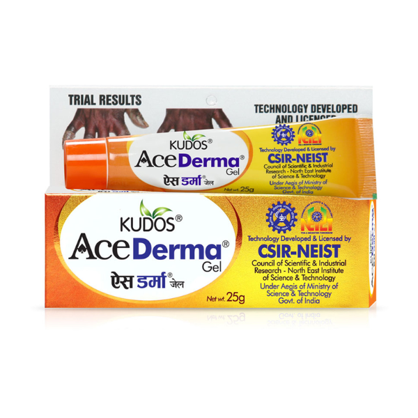 Kudos Ace Derma Gel is an Ayurvedic skincare solution designed to provide relief from various skin concerns including dryness, itching, inflammation, and discomfort. The gel is formulated with natural ingredients that support skin hydration, promote healing, and soothe irritated skin. It absorbs quickly into the skin, helping to repair damaged skin and reduce redness effectively.