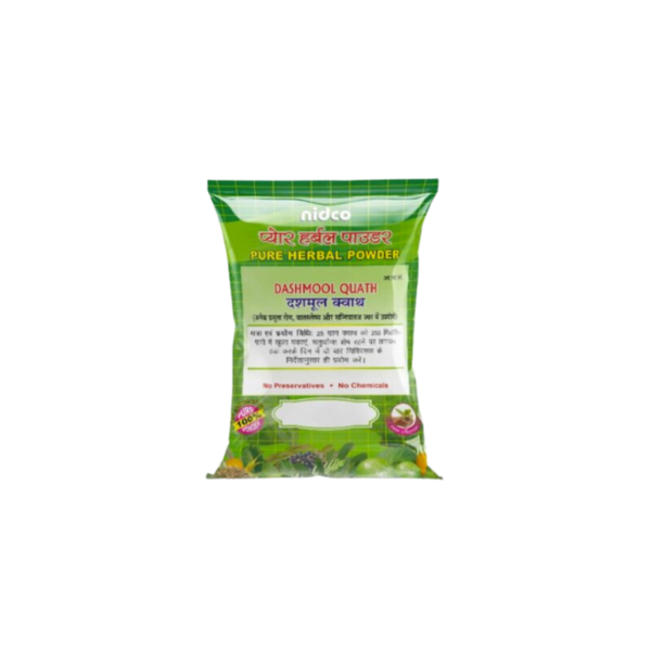 A traditional Ayurvedic decoction (kwath) made from ten healing roots used internally to soothe body pain, rebalance Vata & Kapha, support digestion, ease respiratory issues, detoxify organs, and calm nerves.